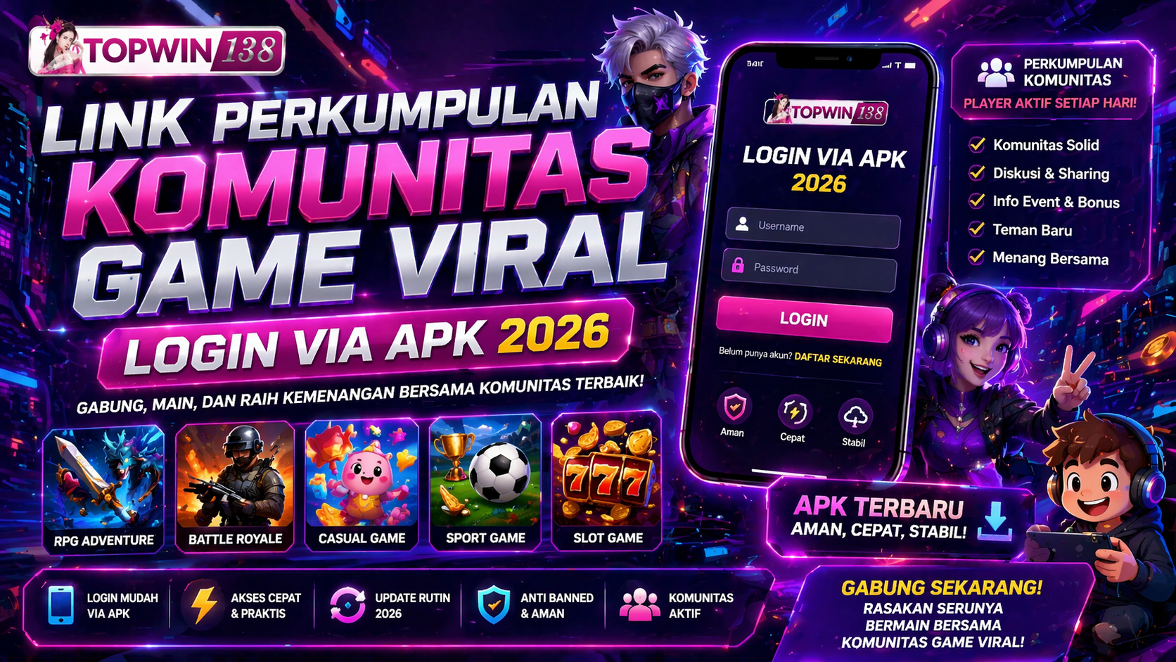Buat yang baru mau coba, topwin138 login sekarang makin mudah lewat aplikasi APK resmi mereka. Gak perlu lagi ribet buka browser biasa yang kadang diblokir. Cukup download APK-nya dari link alternatif topwin138 yang dibagikan di grup komunitas, lalu install dan langsung login pakai akun yang sudah ada. Prosesnya cepat, tampilan aplikasinya juga ringan dan user-friendly. Makanya komunitas game viral ini semakin solid, karena semua member bisa stay connected tanpa takut putus akses.